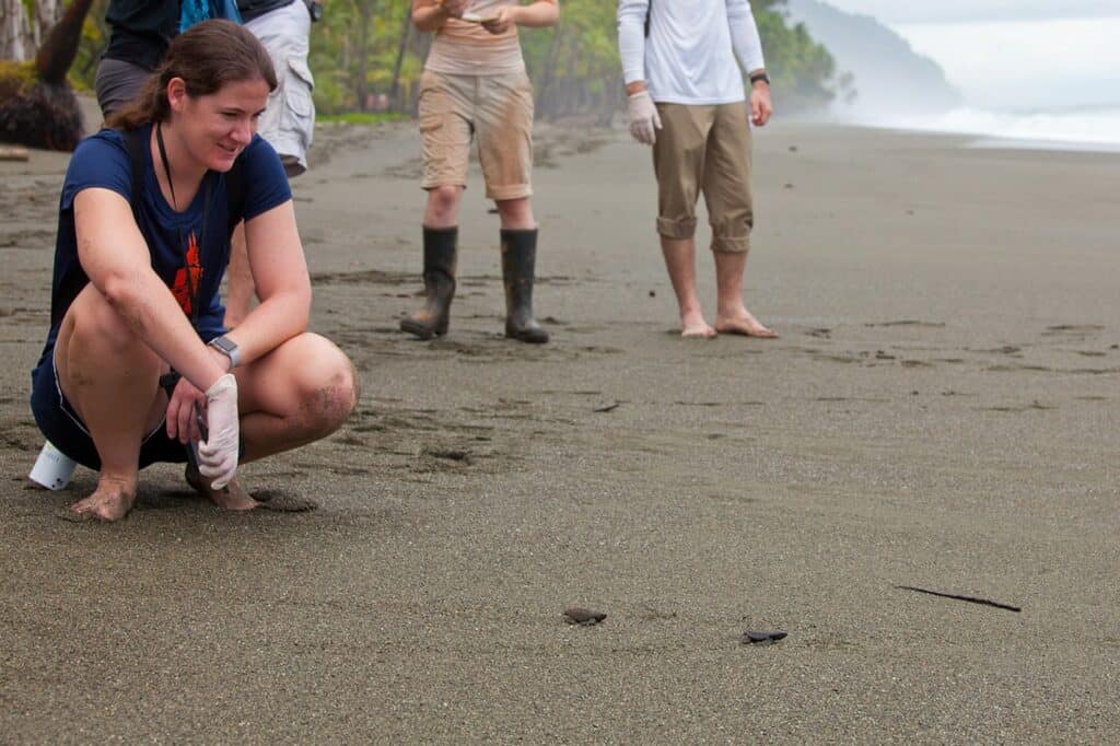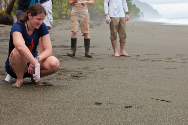 On one day we will join field biologists with the nonprofit organization Osa Conservation on their wildlife monitoring activities. They conduct many research programs throughout the Osa Peninsula, including sea turtle monitoring on Playa Piro, which hosts four sea turtle species: primarily olive ridleys and some green turtles, with rare hawksbills and leatherbacks. Depending on the researchers’ schedule, we may have the opportunity to visit the sea turtle nesting beach in the morning to check for nests and release hatchlings. Overnight at Bosque del Cabo Rainforest Lodge. (B, L, D)