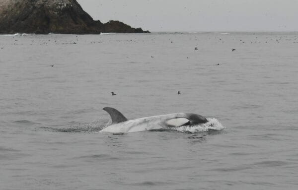 Our vessel, the iconic 60-foot Salty Lady, departs from San Francisco Yacht Harbor at 8:30am. On every trip we provide a whale expert, a seabird expert, and a professional photographer who shares photos with you for free! No matter what animals we see, our experts will tell you all about them and they will be photographed and recorded in digital databases to support research and conservation. To start the trip, we cruise under the Golden Gate Bridge, often seeing harbor porpoises along the way, and travel up the coastline of the Marin Headlands. We then check in at Diablo Cove to see hauled-out harbor seals and occasional Black Oystercatchers on the rocks. From there, we head past Point Bonita Lighthouse and begin our 27-mile journey to the Farallon Islands, humpback whale watching and birding all along the way. A little over 2 hours later, we pull into the calm waters of Fisherman’s Bay at Southeast Farallon Island. There, we soak in the incredible marine habitat which supports over 300,000 breeding seabirds, over 5,000 seals and sea lions and over 100 great white sharks in the fall months (disclaimer: it is very rare to see sharks on our trips, but they are there!). There are also several resident gray whales to see at the Farallon Islands, one of the only places in the world to see them outside of Alaskan waters during the summer months. Next, we continue over to the south side of the Farallones where the biologists who study and preserve the islands live. (Please note: at no point during the trip do we set foot on the islands, they are off-limits to the public.) Nearby, there is a huge colony of northern fur seals, which is growing year after year despite being hunted to local extinction in the late 1800s. Weather permitting, we then go beyond the islands to the Farallon Escarpment, where the ocean floor drops off from roughly 300 to 3,000 feet very quickly. This area is where we can find rarely-seen deep-water seabirds (including albatross), a large variety of dolphins and porpoises, and enormous, magnificent blue whales. From there we begin making our way back to San Francisco Bay seeking out more whale encounters along the way. We often have beautiful sunny conditions and great photographic opportunities coming back under the Golden Gate Bridge. We arrive back in San Francisco right around 4:00pm and our wildlife experts will give a summary of what we saw and our photographer will have a link to images from the day ready for you to view or share as you wish.